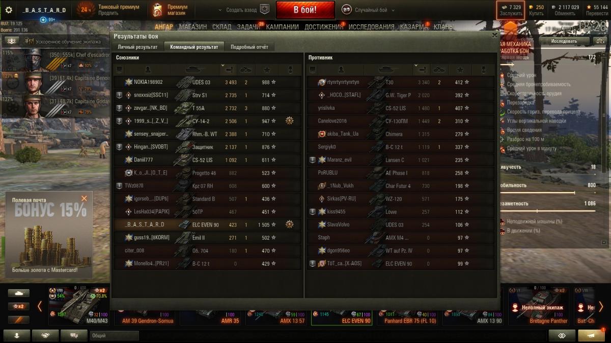 Только вот до ближнего боя на ХВК лучше не доводить. Это не 432/ЛТТБ, которые могут в ближний бой (в т.ч. и в таран, причем таранят даже лучше, чем ХВК за счет брони). ХВК30 ИМХО нужно отыгрывать с самой дальней линии, иначе он не живет.
