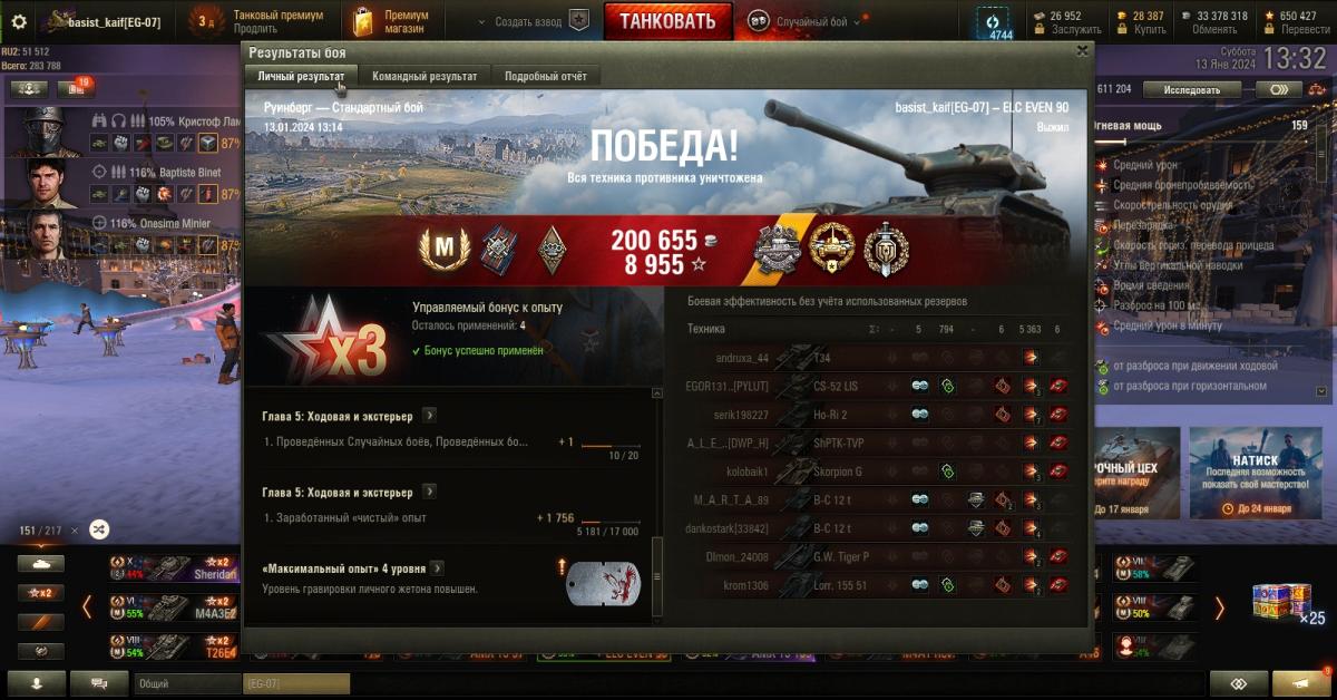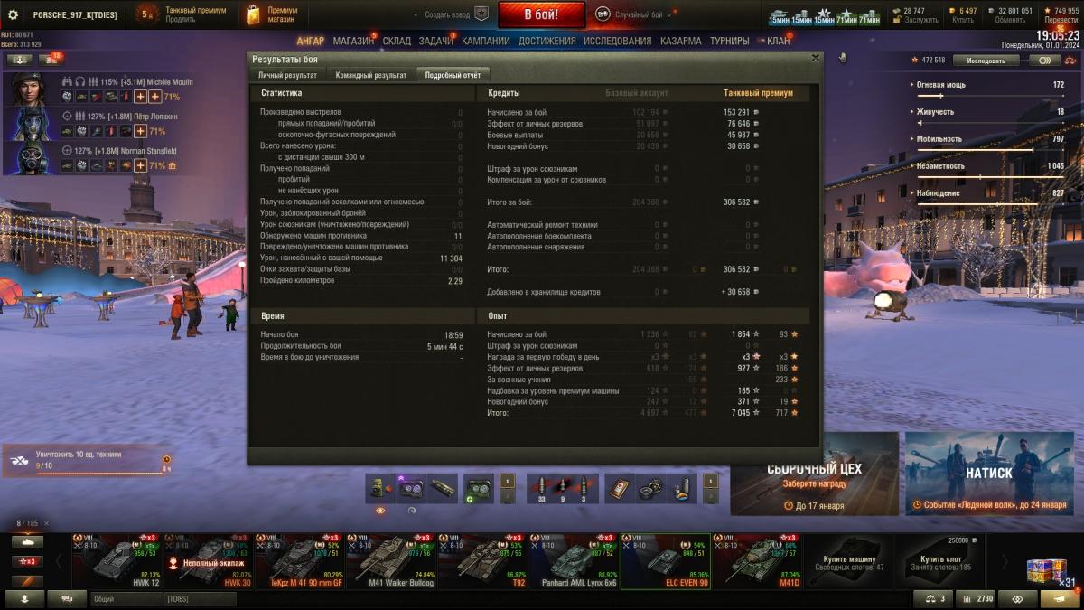 Но, как я говорил выше, у экипажа пока прокачано только "100% БоБра и 95% Плавного хода и поворота башни".