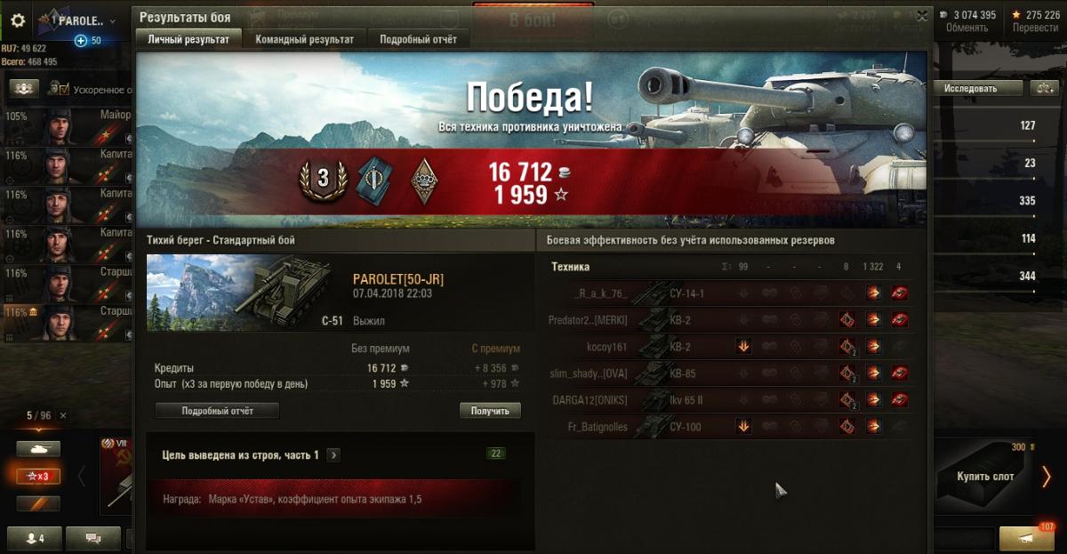 PAROLET Опубликовано: 8 апреля, 2018 Игроки 8 400 публикаций 207 970 боёв Поделиться Опубликовано: 8 апреля, 2018 08 Апр 2018 - 11:37 пользователь nextstepwillbe сказал:Хз, в плане попадания он раньше за 1 выстрел сносил больше. Если по фуловому успеешь выстрелить. Союзники как правило быстро обгрызут цель пока сам сведёшься.________________________________________________________________________________________________Сейчас на СУ-5 играл. Вроде и старался, но только два выстрела по целям сделал, остальные в трупы попадал.http://cdn-frm-eu.wargaming.net/wot/ru/uploads/monthly_04_2018/post-4921943-0-34695200-1523196141_thumb.jpghttp://cdn-frm-eu.wargaming.net/wot/ru/uploads/monthly_04_2018/post-4921943-0-69124300-1523196156_thumb.jpgНо тем не менее приятное сообщение получил. http://cdn-frm-eu.wargaming.net/wot/ru/uploads/monthly_04_2018/post-4921943-0-92275500-1523196242_thumb.jpg Aut cum scuto, aut in scuto! Ссылка на комментарий Поделиться на других сайтах Другие способы поделиться...
