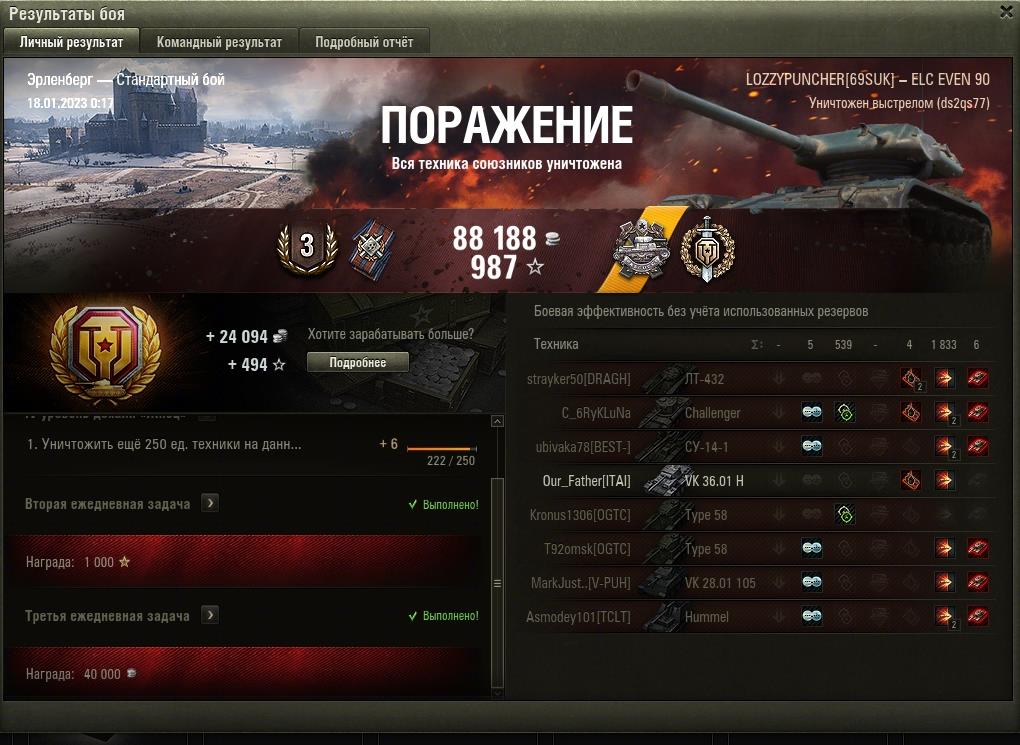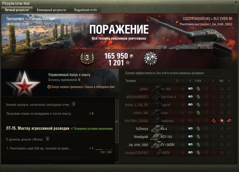 Танк, который каждый раз напоминает мне, насколько я никчемный в этой игре и что 10 лет были потрачены зря. 390 боев, 76% отметки. Даже за 80 нереально переступить.