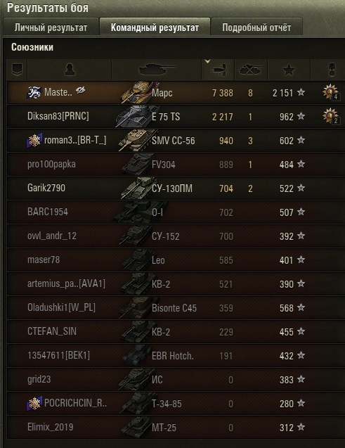 Топ 3, 2026: *loading...* || Топ 3, 2025: Waffenträger auf Pz. IV, Pz.Kpfw. S35 739 (f), Pz.Kpfw. 38H 735 (f) || Топ 3, 2024: TVP T 50/51, AMX 50 Foch B, Waffenträger auf Pz. IV || Топ 3, 2023: Bat.-Châtillon Bourrasque, ShPTK-TVP 100, Pz.Kpfw. 38H 735 (f) || Топ 3, 2022: СУ-130ПМ, ShPTK-TVP 100, Waffenträger auf Pz. IV || Топ 3, 2021: Т-28Э, Pz.Kpfw. S35 739 (f), Waffenträger auf Pz. IV || Топ 3, 2020: Т-28Э, Rheinmetall Skorpion G, Waffenträger auf Pz. IV || Топ 3, 2019: Т-28Э, Waffenträger auf Pz. IV, Rheinmetall Skorpion G || Топ 3, 2018: Waffenträger auf Pz. IV, Rheinmetall Skorpion G, Т-28Э || Топ 3, 2017: Rheinmetall Skorpion G, Pz.Kpfw. S35 739 (f), Т-28Э || Топ 3, 2016: Waffenträger auf Pz. IV, Т-28Э, Rhm.-Borsig Waffenträger || Топ 3, 2015: Waffenträger auf Pz. IV, E 25, Rhm.-Borsig Waffenträger || Топ 3, 2014: M18 Hellcat, Е 25, Rhm.-Borsig Waffentrager || Топ 3, 2013: Объект 268, M18 Hellcat, FCM 36 Pak 40 || Топ 3, 2012: Marder II, КВ, СУ-26 || Топ, 2011: All