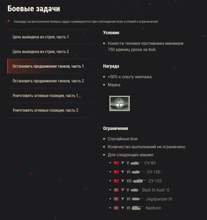 ​ Например "остановить продвижение танков" что это за задача!? Фраги и урон в зачет не идут.