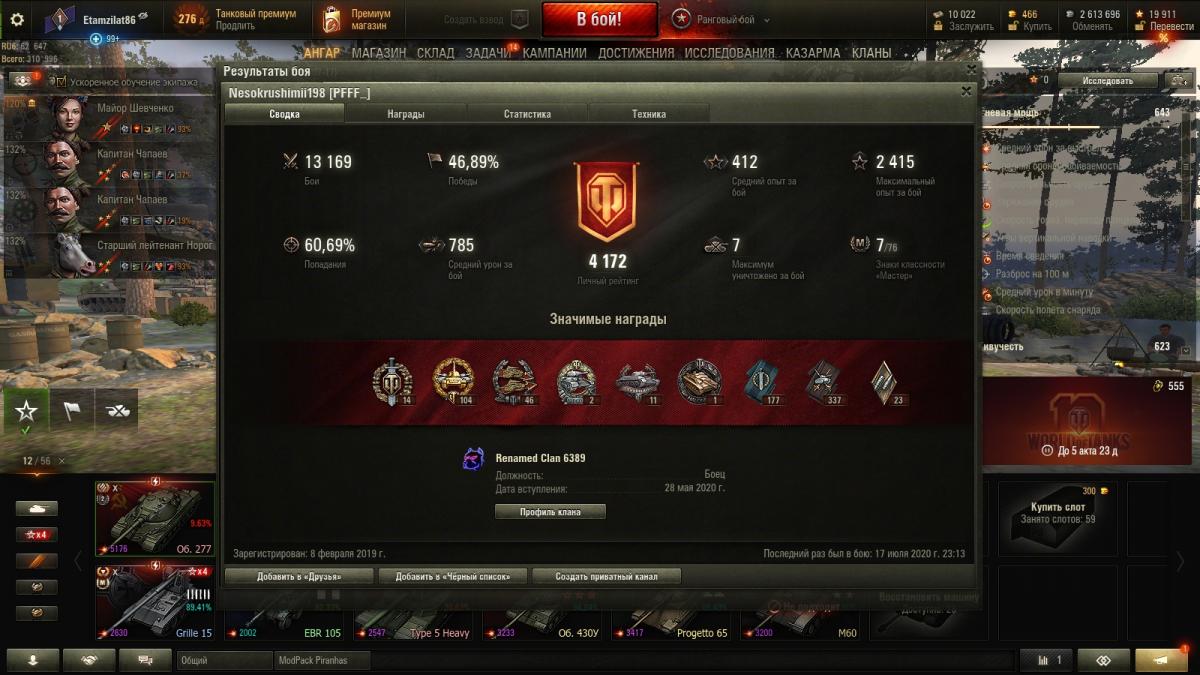 Уникальные машины в ангаре:  Т-22 ср   Объект 907   Объект 260   Объект 279(р)   M60   T95E6   Т95Е2   AMX 50 Foch (155)   FV215b   FV215b (183)   121B