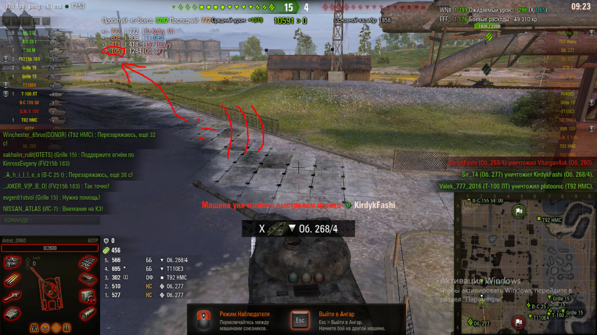 Я представляю как у них горело, но 277 тут не причем, наверно огонь ввели не сводясь (ну типа танк пакетный, можно и вертухи давать), ибо три снаряда прилетали под дикими углами относительно брони, один во внешний модуль  - гусля.