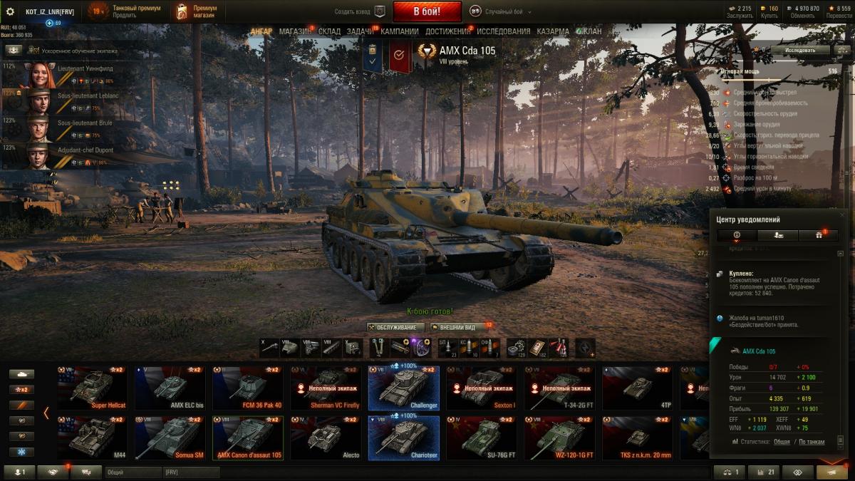 Выбор у меня зависит от наличия экипажа, а экипаж есть на  105 , на Льва, на Мле49, на су122 44