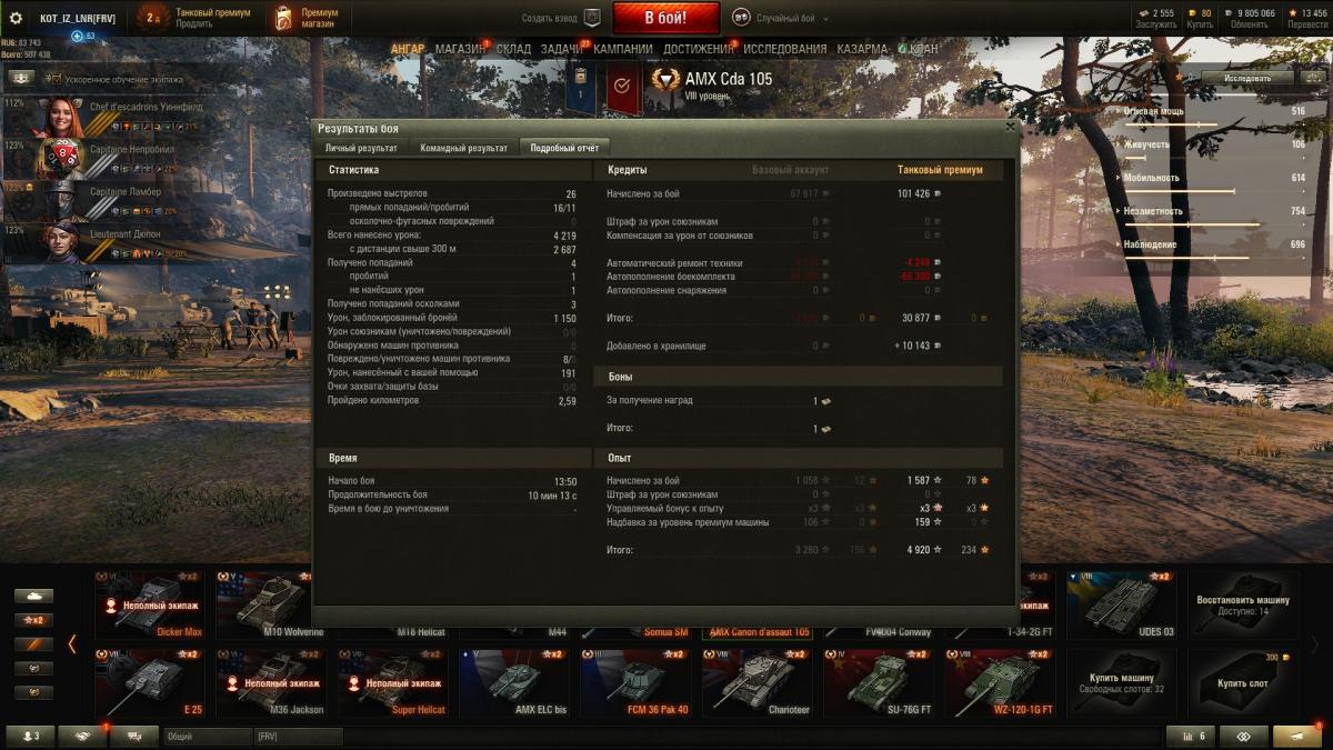 На счет точности, поменял мышь и точность сабжа стала впечатлять)) Но на % попадания влияет и то, что часто пытаешься попасть в такие цели, в которые на другом стволе даже и смотреть бы не стал, еле торчащие лючки башен и т.д. Соответственно бывают промахи. В крайнем бою из 15 выстрелов 7 попал, стрелял с 400м в елку из 6 1 попадание. Изменено пользователем alnewer