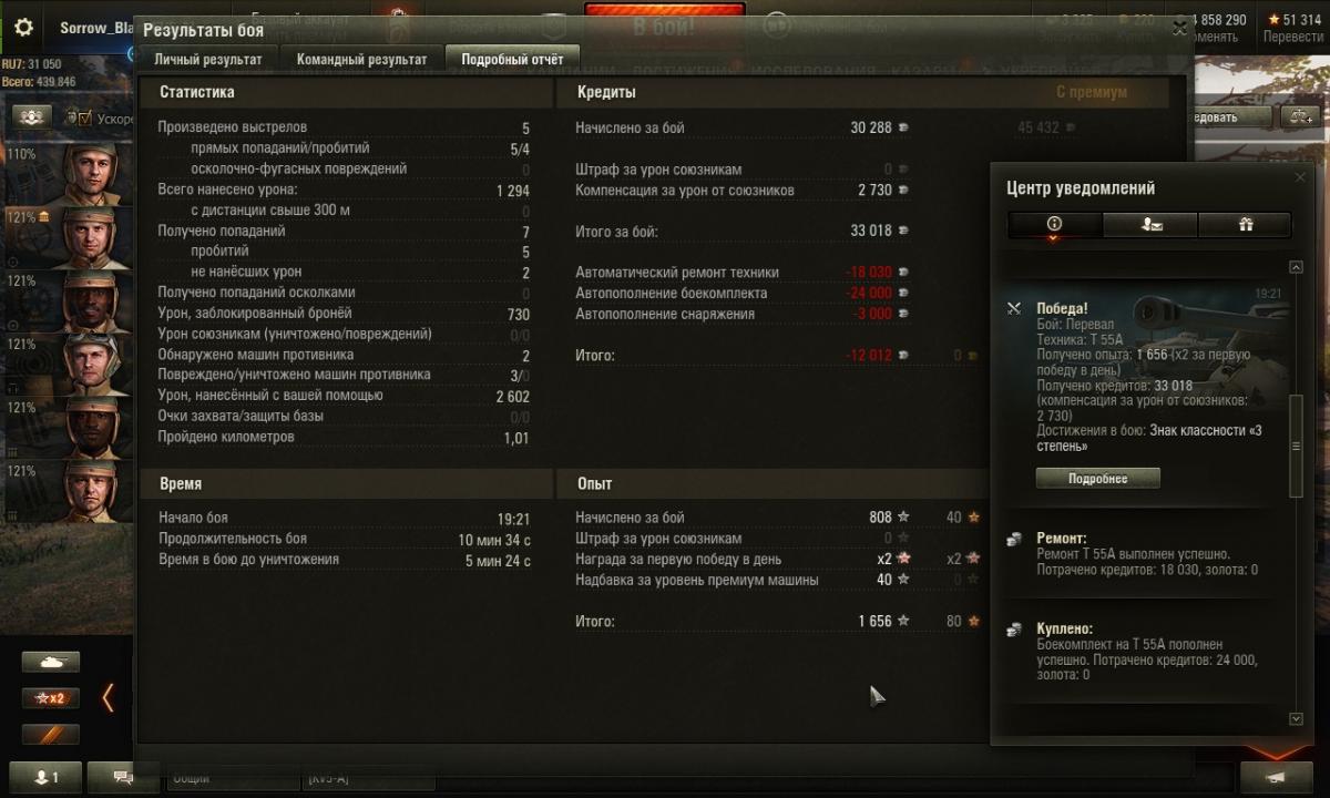 В чем завидовать? Каждый играет в свое удовольствие и как хочет. В свое время мне нравилось играть на Об.263 (тот еще старый с нормальной пушкой и поворотливостью, ныне Об.263Б), так не смотря что Х лвл у меня выходило практически в ноль по серебру (в среднем и это без према). Хорошая была техника, но ее отобрали, хотя обещали так не поступать. И по поводу расходов, в том то и дело, что общий минус складывается из ремонта техники и расходников и он для Т55А стабилен из боя в бой. Данная машина хоть и награда, но несет в себе убыток причем постоянный, такой себе чемодан без ручки (и нести не удобно и бросить жалко). Играется нормально только на голде, за исключением игры в топе, там можно и на ББ. И за эту технику еще нужно было упарываться больше года и что в результате? Машина хуже чем прокачиваемая оцененная в 17500 голды (!), обменять ее при этом на прем нельзя. Вот на Сомике, Скорпе Г, ПТ-ВЗ, Стерве я таких проблем не имею, играю в удовольствие и не заморачиваясь с убытками (на голде практически не играю от слова совсем и это касается не только прем техники), сплошной фарм и фан.