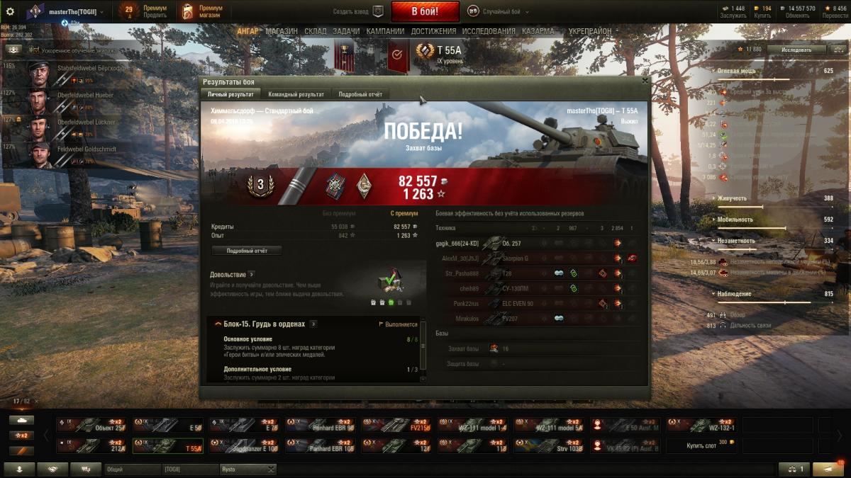 Это один из лучших прем-танков в моём ангаре. Самый-самый, конечно, ТоГ-2, но этот держит за собой твёрдое второе место. Шикарный аппарат.