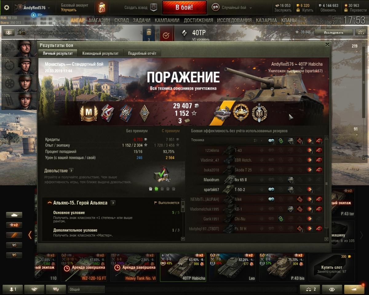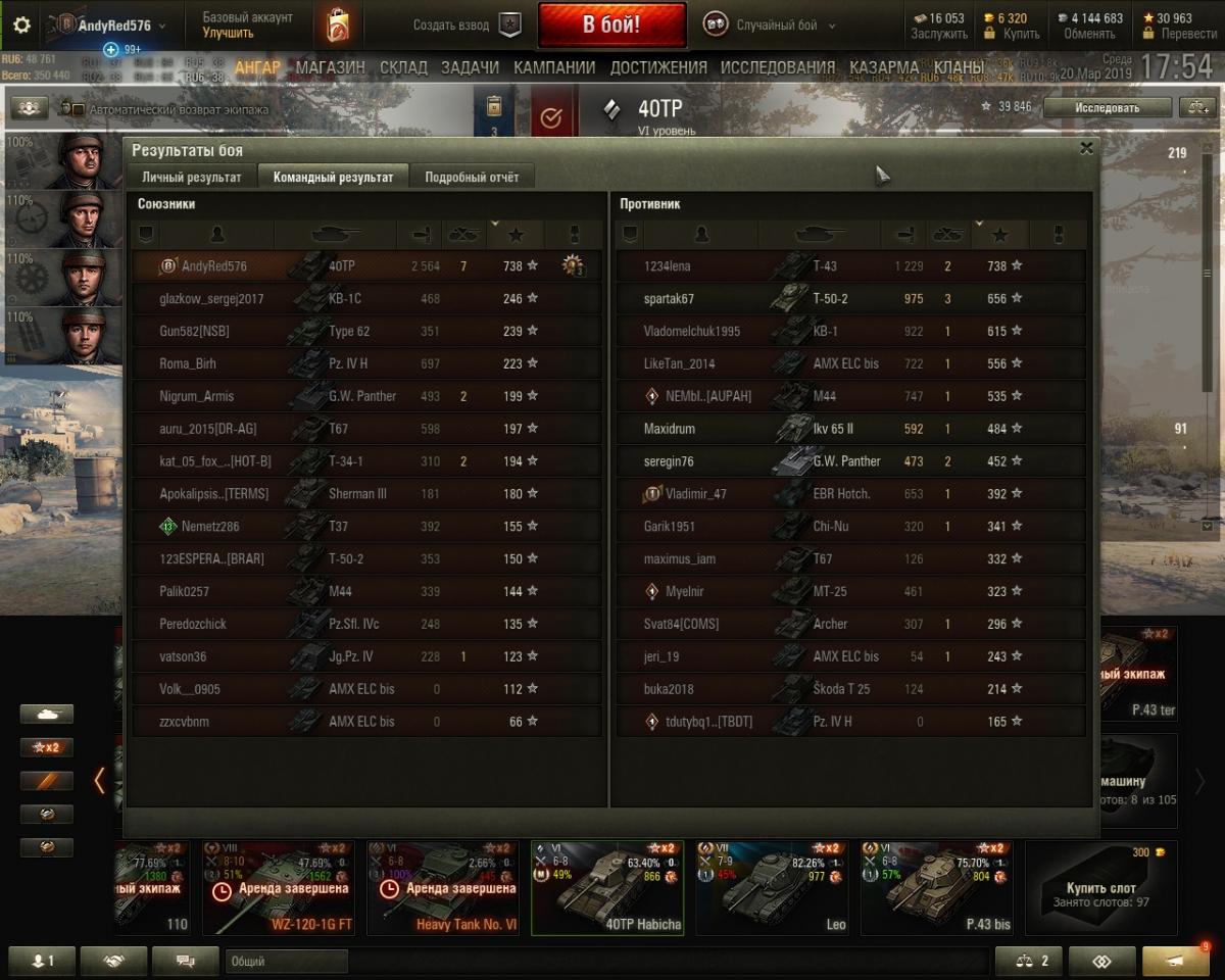 Meatwad11 Опубликовано: 21 марта, 2019 Игроки 2 098 публикаций 70 011 боёв Жалоба Поделиться Опубликовано: 21 марта, 2019 (изменено) Первый бой в топе, "еду" свои 20км/ч, рядом обгоняют всякие тяжи, типа КВ, думаю, ща ворвусь, сразу всех порву - бронированный танк полюбас, раз так ползет, выхожу на противника, и все, кому не лень, делают из меня дуршлаг....Я ещё думал, что П43 бис - корыто, но нет... Логика танка не совсем понятна: слоупок - следовательно, за счет маневренности дамага не сделаешь, пушка косая - значит, для ближнего боя, выходишь на этот ближний бой - брони нет, тупо размениваешься хп, из-за укрытия из инвиза стреляешь - не успеваешь назад скрыться. Вопрос, за счет чего тогда набивать на нем дамаг?! Какой-то тактики по набиву на нем я так и не понял, была лишь тактика выживать: на открытых картах - сидеть в кустах, если есть возможность, пытаясь сделать максимально большее для команды, т.к. стоит только вылезти - и ангар уже приветствует тебя через несколько секунд, на городских - ехать на раш и ни в коем случае не получать дамаг, наблюдая за выстрелами противников выбирать момент для вылазки, а на закрытых картах с рашами - вообще вбр....Последние капли опыта с х2 получил после серии из 6-ти сливов и с радостью продал эту каловую массу.46 боев - 46% побед... 836 среднего, удачного боя для взятия мастера так и не сложилось. Включал резервы на 50% опыта, делал лбз ради халявного према, получал один или 2 раза по 5к опыта по акции "в бой на", до топа вкачивал за свободку. Изменено 27 марта, 2019 пользователем Meatwad11 2 мои реплеи Ссылка на комментарий Поделиться на других сайтах Другие способы поделиться...
