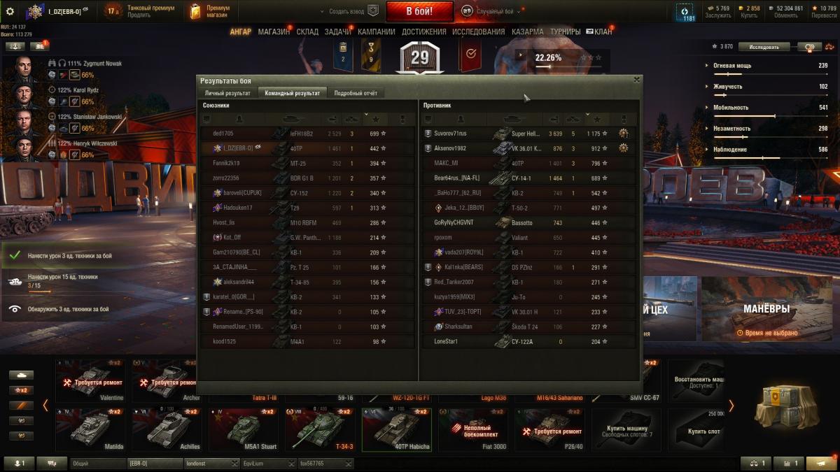 Zerstorer_der_Bilanz Опубликовано: 9 мая, 2024 Игроки 12 254 публикации 25 922 боя Жалоба Поделиться Опубликовано: 9 мая, 2024 (изменено) 10 май 2024 - 00:53 пользователь MrJoeOrange сказал: Ещё забыл VK 36.01H, который приезжает с 1360 хп к тебе и говорит "Здарова, го в размен?" Честно говоря, мне он не понравился и я его продал.Для тяжелых танков я ставлю в приоритет альфу и потому, мой выбор - АРЛ-44 с 300кой.На нем я закрывал ранги6. Изменено 9 мая, 2024 пользователем Zerstorer_der_Bilanz Что роднит заводчанина Алешу и Хитмана? Цифра 47)) Ссылка на комментарий Поделиться на других сайтах Другие способы поделиться...