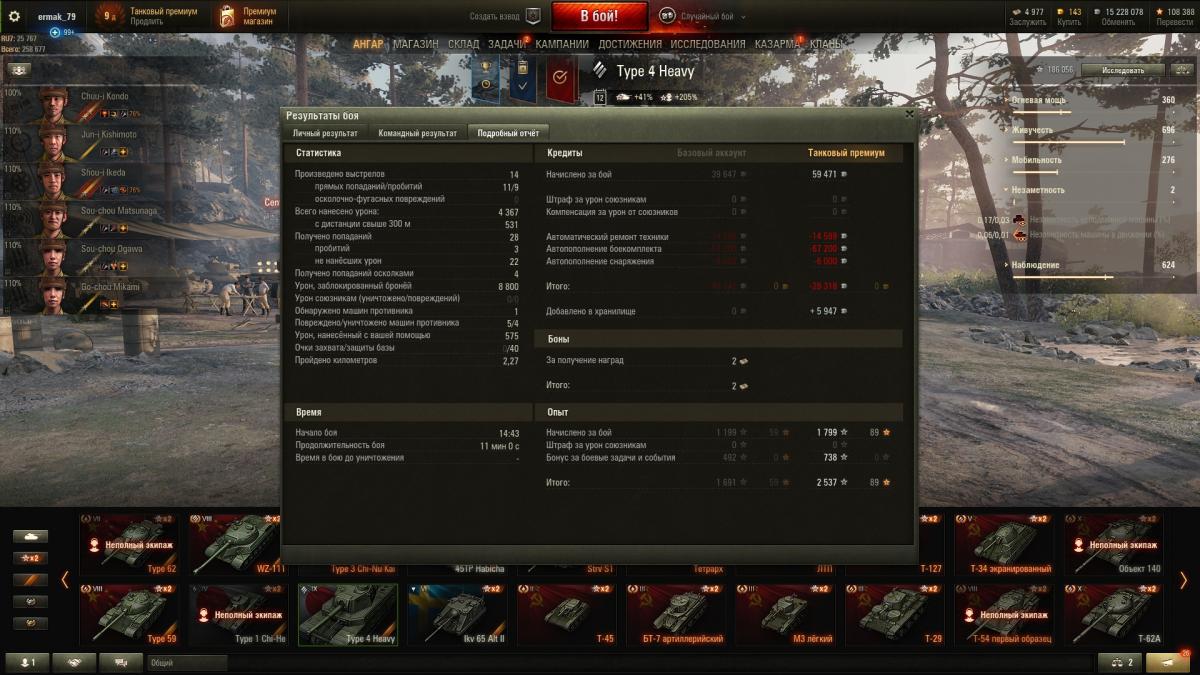 UPD: танк г**но, коротко и ясно. Никто не качайте японцев, остановитесь на 6-7 левле, они ещё играбельные. Я столько нервов потерял, пытаясь понять как играть на ЭТОМ, и на его предшественнике 8 левла, но понял, что смысла нет. Продал танк и забыл до лучших времён (которые не наступят). Жалко только хороший экипаж и 500 голды, влитые на смену специальности радиста (ещё раз большое спасибо, варгЕйминг). Смысла в сверхтяжах сейчас нет совсем, арта накидывает, враги прошибают голдой, всякая шелупонь в лоб шьёт под всеми углами, итальянцы ббшками шьют в лоб не напрягаясь, скосы по бокам влд не дают танковать ромбом, башня никакая, пробивают в 90 градусные плиты и маску. Танк не актуален совершенно, не тратьте время и нервы, оно того не стоит.