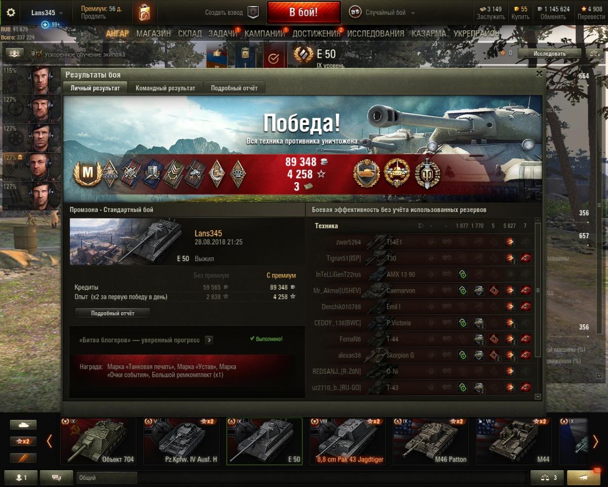 3)Ну и моё мнение по поводу сборки - обзора мало не бывает, а такому танку, как е50 вентиль мастхев. Это досыл можно не брать, если ты снайперишь, но ни как не вентиль. Ессно, с шоколадом, бобром, а возможно и приказом на вентиль.