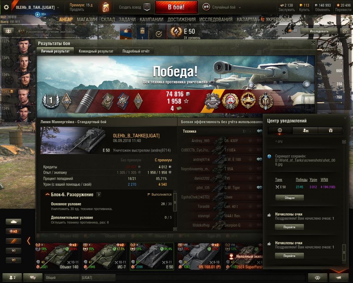 А Вы е50 катание с оптикой????? Блин, я катаю стаб + боновый досыл + боновый вентиль и обязательно шоколад, ну и само-собой экипаж 5 перков) сейчас приблизился ко 2-ой отметки 84%, думаю боя 2 и получу 2 отметку!!! На данный момент по суммарке ассист+дамаг иду реально на 3 отметку! Это будет мой второй танк после т54 с 3 отметками))