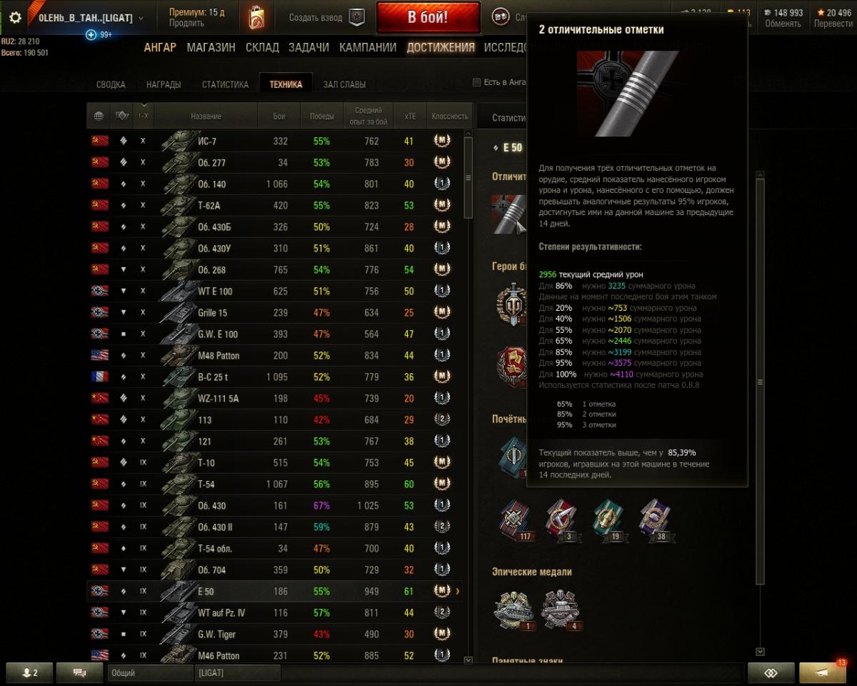 И ни одного танка с 2-я отметками, мечтай... :)  А т-54 просто очень любим анскильными любителями всего советского. У меня, вроде, он единственный ст с 2-я отметками, хотя на ст толком играть не умею. Е50 же икона для скилловиков, а значит между 2-й и 3-й отметками - пропасть.