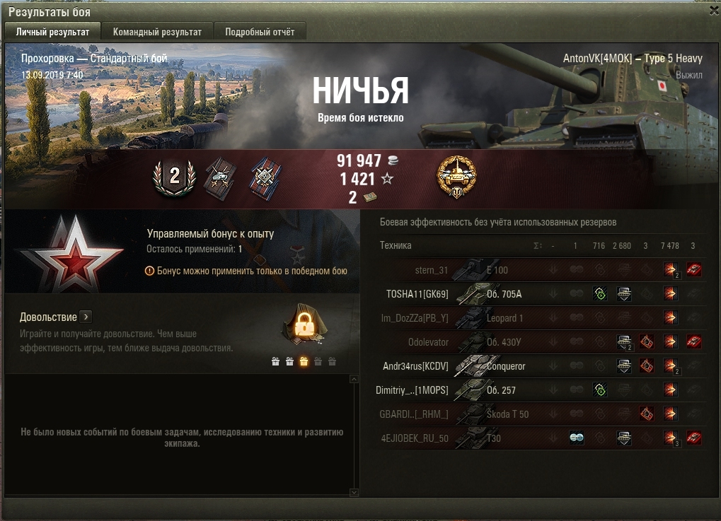 Вот такой вчера со мной произошёл бой на 7478 урона на Прохоровке. Думал, уеду в ангар с 0 урона или в лучшем случае 1000, а настрелял свой максимальный урон на тип 5 за 385 боёв на нем.