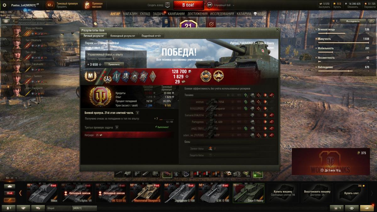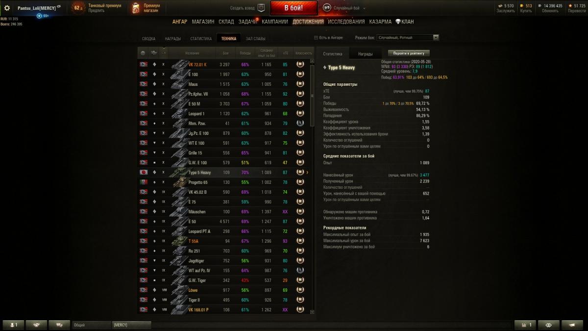 Так уж вышло что 90% боев на нем я откатал с фугаской, причем уже после ее нерфа, и дико плевался с него пока мне не подсказали поставить на него ббшницу. Думаю со временем подтяну его до уровня мауса и ис4 с 56% побед и 2400+ среднего. Конечно и это для мерси не показатель, но усераться и катать на голде, доппае, боновом оборудовании, инструкциях и прочих извращениях для повышения результатов до 3к среднего - сомнительный способ для самоутверждения как по мне, если вы этим, конечно, не зарабатываете на жизнь - тогда вопросов нет.