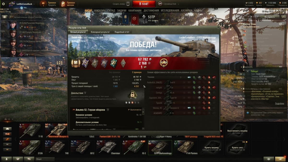 Танк то интересный,и если бы не помойный баланс( 9 из 10) на дне списка,данный тунк точно прописался бы в ангаре.А так да,побыстрее к 9,а там и к 10.