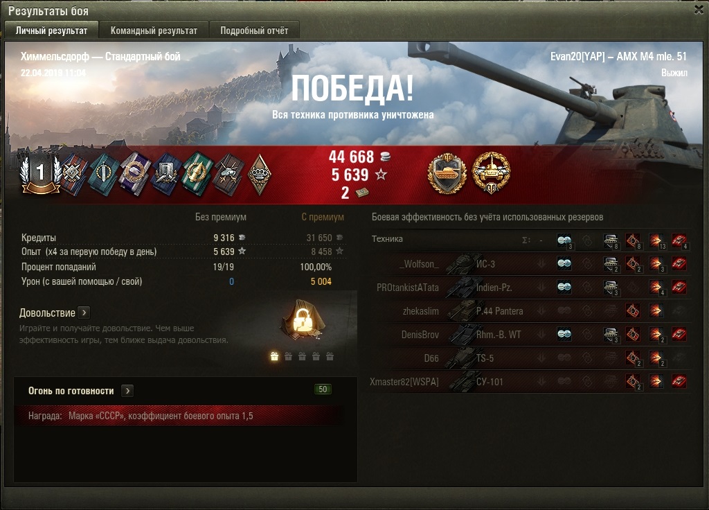 О да, оправдались мои более чем годовые страдания на 65t. Первый бой, башня стоковая, движок естественно давно открыт на 50-120.