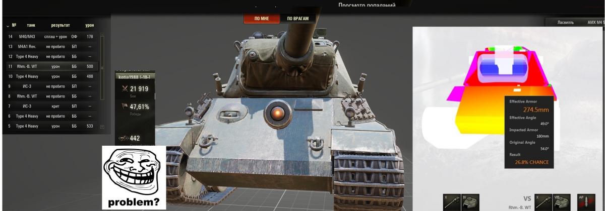 Конечно тебя вынесут, как мусор, если будешь стоять и ничего не делать. Если бы на французе сидел я, они бы там давно сдохли. В следующий раз стреляй Т-29 в крышу башни - будешь пробивать каждым выстрелом.