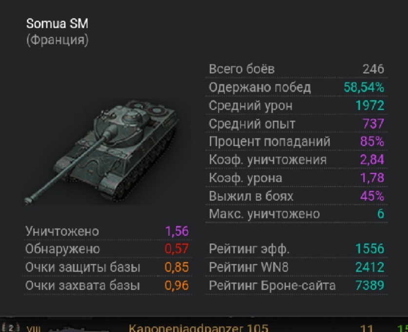 Я давно не играл, хотя акк старый.  Игрок не самый лучший, иногда туплю, но на соме у меня лучшая статистика среди всех моих танков, 57 процентов побед, а средний урон 2000к
