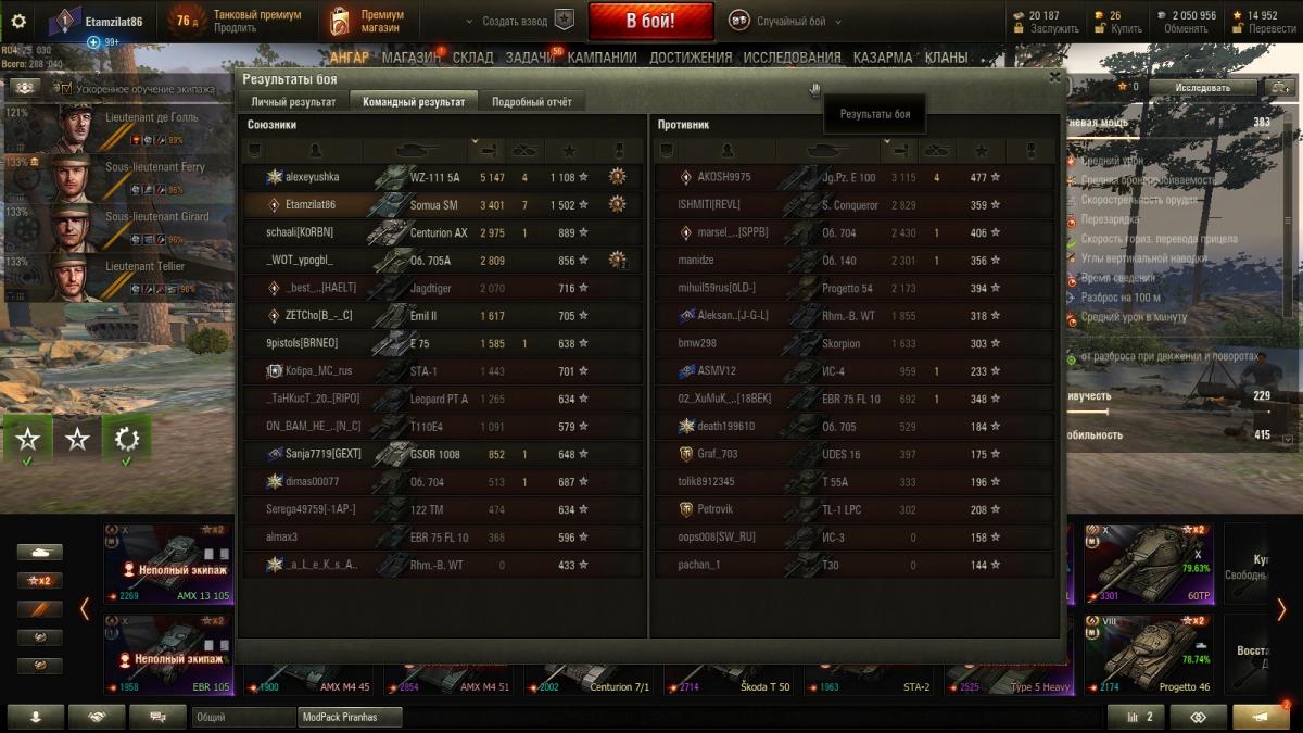 Да, бывают сливные дни. Вот у меня сейчас что на Бизоне, что на Сомуа кидает в очень слабые команды, что сказывается на проценте побед. Но это никак не мешает делать нормальный настрел  http://cdn-frm-eu.wargaming.net/wot/ru/uploads/monthly_03_2021/post-28090200-0-75454300-1615303991_thumb.png . На фуллББ, без пайков. Чего тебе ну никак не удается. Не только на Сомуа, вообще ни на чем. Да, игра не та, ага...