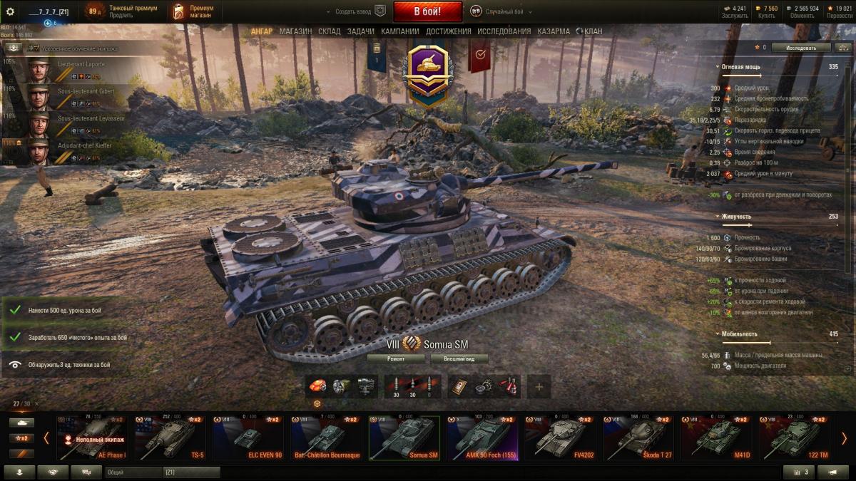 Прошел ранговые, нафармил много бон, купил оборудование, купил за 2500 улучшенный пропуск( тоже с ранговых), взял трофейный "пропеллер" Поставил все это на Сом. Активировал аренду на 10 дней. И теперь кайфую. Сессионки 2700 урона чистого и еще 400 ассист. Ну классный же танк, ну вы чего?