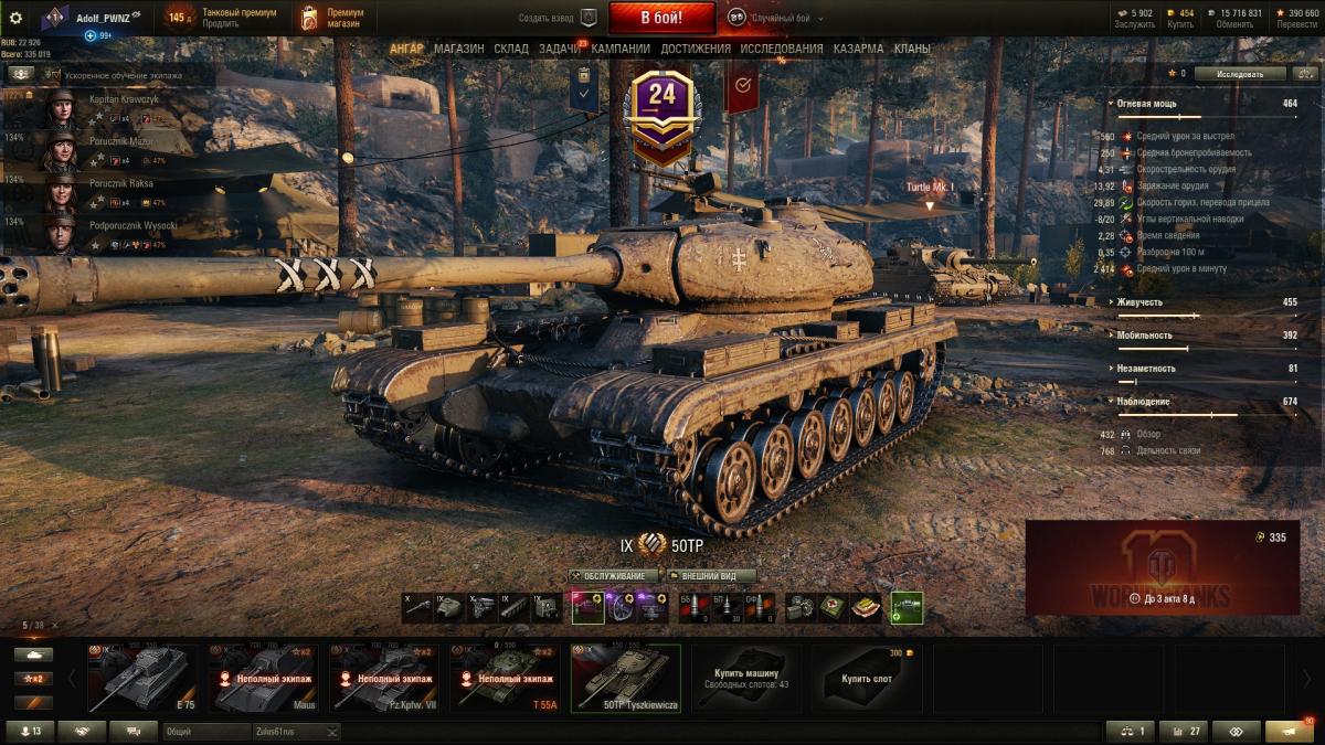 Исследовано:60TP Lewandowskiego исследован. Потрачено нераспределённого опыта 172 319, свободного опыта 1 461.