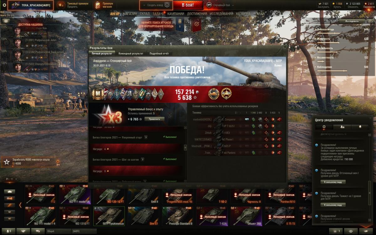 Реплей: http://wotreplays.ru/site/13385995#aerodrom-toxa_kpacaba-50tp_tyszkiewicza