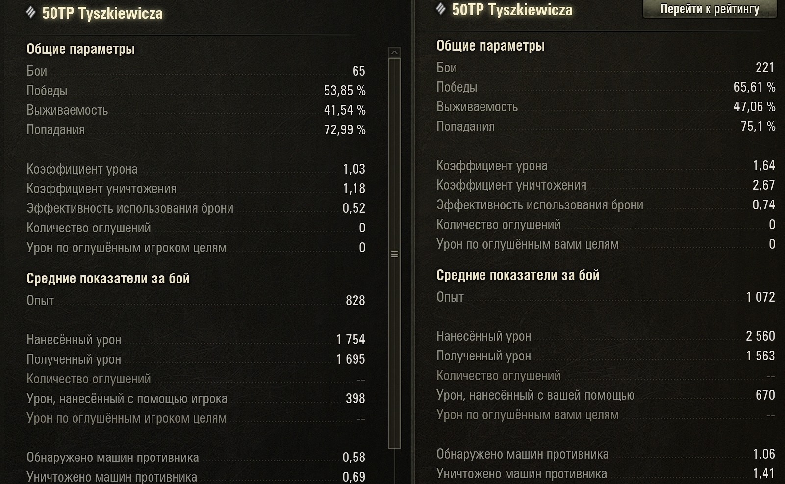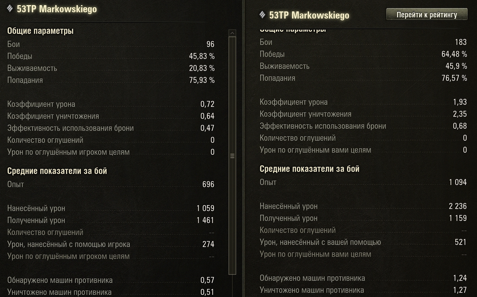 Кста, не поделишься, как у тебя на 53ТП и 50ТП по 0.5 обнаруженных за бой? 53ТП вообще вполне себе быстрый, как на нем можно никого не обнаруживать? Это же нонсенс просто.