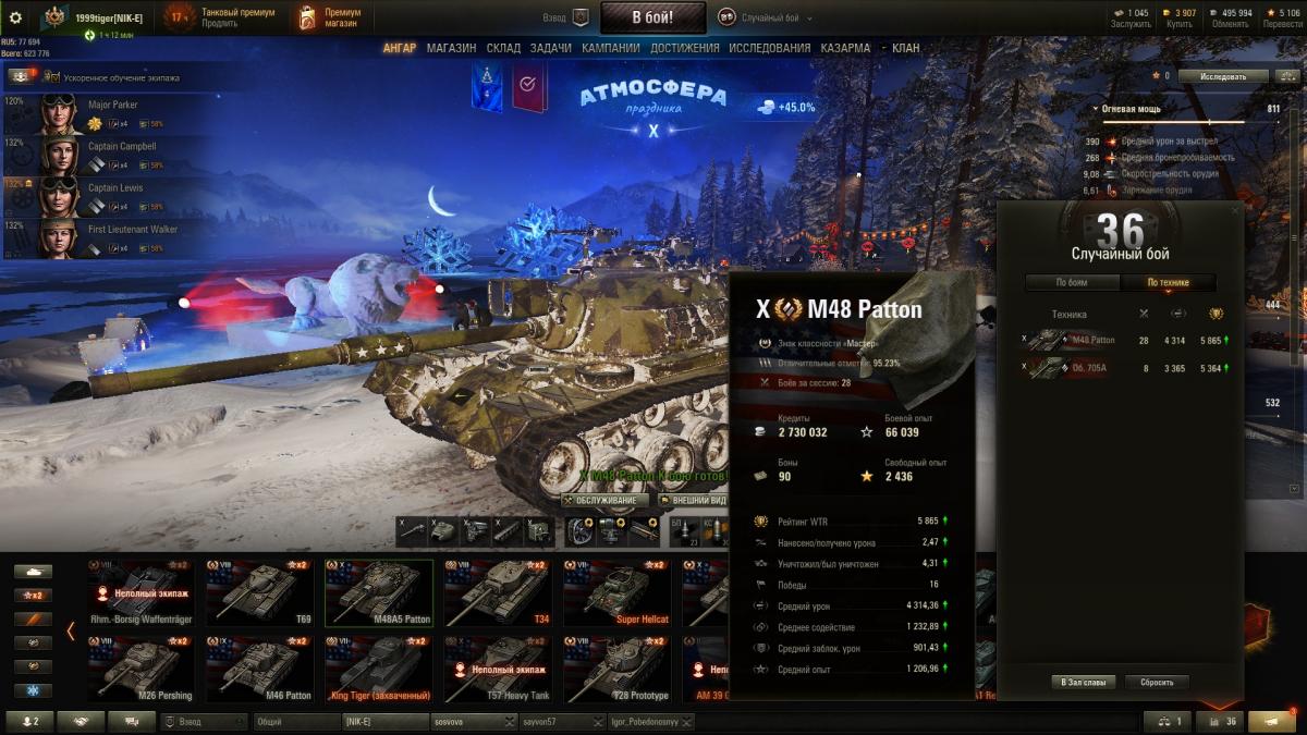 Два или три раза, когда игра благоволила, смог взять только 1 степень. Танк безумно красивый. Если не ошибаюсь, это первый танк с 3D-стилем в игре (тогда ещё бесплатным). Стрелять из него - одно удовольствие. Но, надо признать, я не могу в паттона. И критическим для меня в случае с 48 паттоном - его скорость. Остальное могу преодолеть, а скорость угнетает. На 46 легче ездить Изменено пользователем Ashenwail