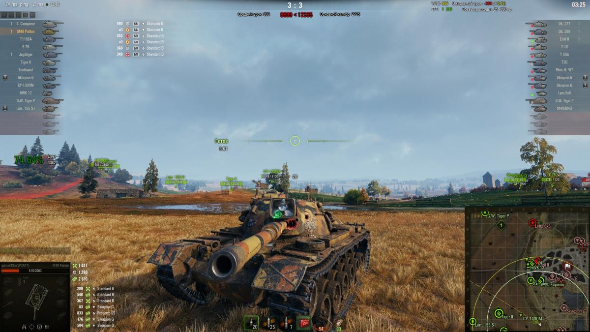 Если бы в игре не было голды, я бы сказал, что на Паттоне можно с определенным успехом играть и на ближних дистанциях вместе с тяжами. Играть на нем на средних дистанциях возможно далеко не на всех картах. Игра на дальних - уменьшает дпм на порядок. В итоге выработать какую то конкретную тактику у меня пока не вышло.