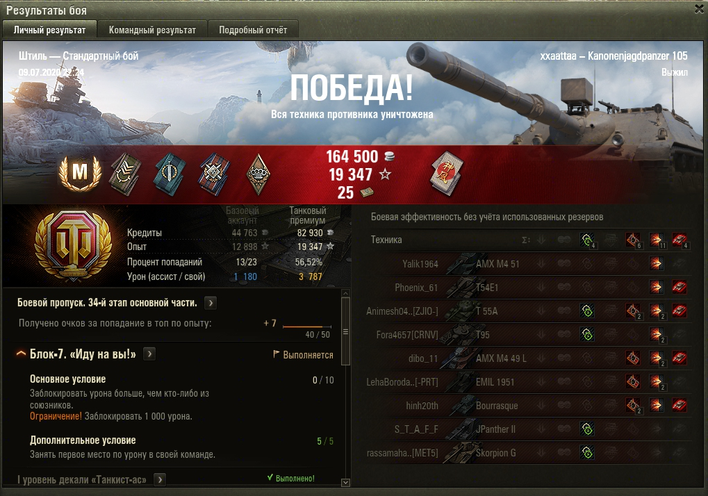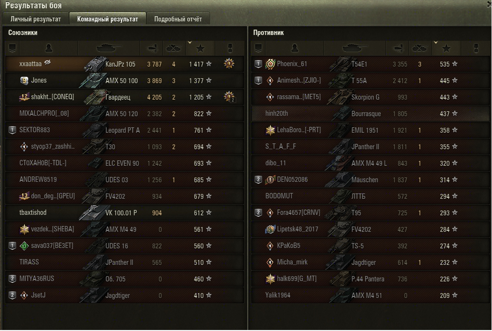У меня Кан зашел на ура. WN8 на нем лучший на акке. Если у вас не получается на нем, это не мои проблемы. Я всегда смотрю реплеи тех, у кого получается. У кого 1000 среднего на ПТ - мне мнение не интересно.