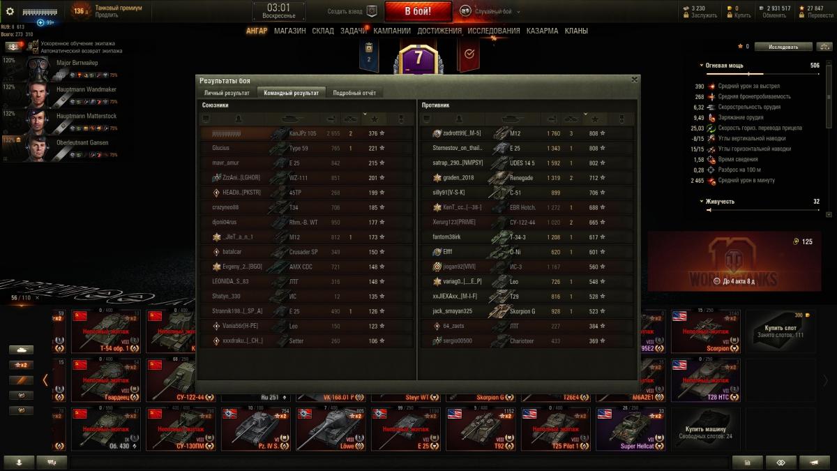 У меня в последнее время вот такие бои на Кане. Просто ничего не успеваешь сделать. Бои по 5 мин, и треть тимы с нулями, остальные по одному- два выстрела. Кто эти люди, и люди ли они ?))) Пока такой рандом, не вижу смысла брать даже самый распрекрасный прем танк, если потом будешь катать его в этом овне.