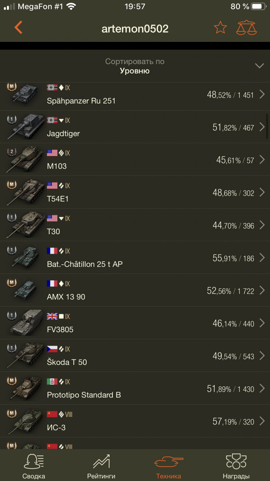 Самое главное выше 4-5 уровня не переходить грань,а там глядишь и 54% через 25к боев станет:medal: