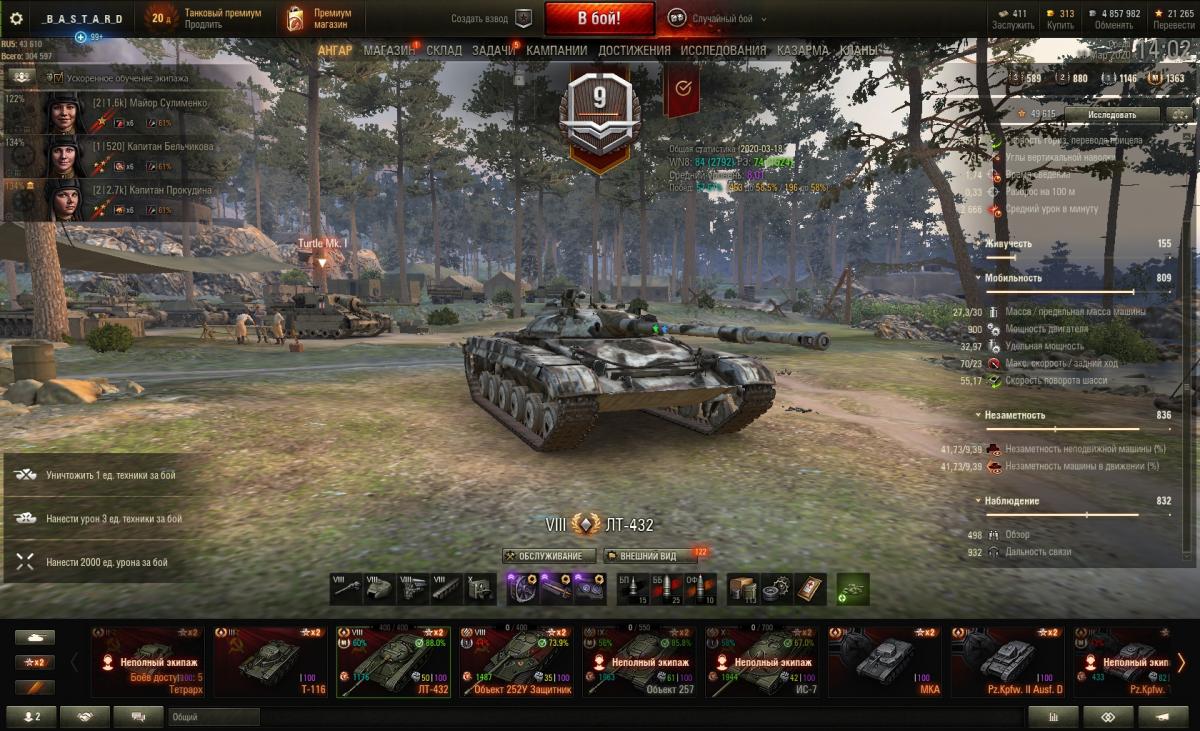 Я не очень любил лт, так как настрел по нашему засвету большая удача, 432ой же позволяет огрызаться и не ждать поддержки от союзников, можно и убежать и догнать.