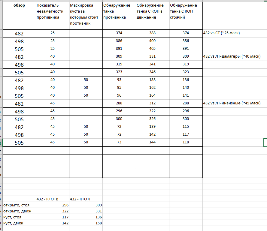 Вот только что, с подачи некоторых товарищей из этой темы, пересобрал 432го с акцентом на урон, поставил эльфийский вентиль и досыл (очки уже синие были), доппай и инструкцию на обзор, получил маскировку 40%, 3.99 кд и 511 обзора. В первом же бою, на Фьордах, просто перестрелял по кд 432го, в клинче, 1 секунда разницы в перезарядке зарешала, потом просто из куста развалил фугасами СУ130пм, решившую с ветерком промчаться по полю. 2800 урона, но всего 300 насвета.