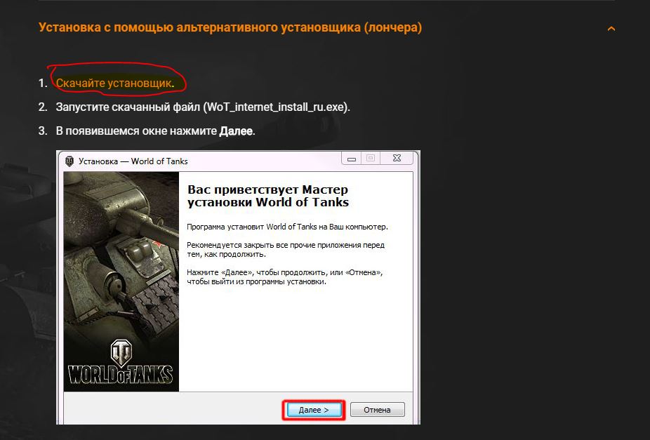Глобальные модераторы Next Опубликовано: 5 февраля, 2019 Глобальные модераторы 30 766 публикаций 56 986 боёв Глобальные модераторы Поделиться Опубликовано: 5 февраля, 2019 http://cdn-frm-eu.wargaming.net/4.5/style_images/wg/snapback.pngNED82 (05 фев 2019 - 14:31) писал:не могу обновится, пробовал загрузить новый лаунчер, а он устанавливает варгейминг центр на С диск без возможности права выбора. Комп на работе играю с жесткого выносного диска. На рабочий комп не имею права устанавливать лишние программы походу придётся прощаться с ВГ что делать?Установить клиент игры можно двумя способами, через Game Center и с помощью альтернативного установщика (лончера)Как установить игру? http://cdn-frm-eu.wargaming.net/4.5/style_images/wg/snapback.pngNED82 (05 фев 2019 - 14:56) писал:все спс не вкурсе был что лоунчер без ВГ центра можно установить ))При появлении вопросов игрового или технического характера в будущем, можете обратиться в Центр Поддержки пользователей.http://cdn-frm-eu.wargaming.net/wot/ru/uploads/monthly_05_2017/post-2245-0-67426700-1495529435.png Ссылка на комментарий Поделиться на других сайтах Другие способы поделиться...