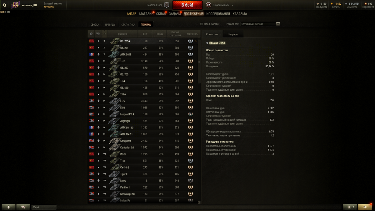 На основе у Шотника вообще нет этого танка. А на акке из видео в статистике нет ни одного боя на 705А ни в рандоме ни в ранговых. Такие дела.