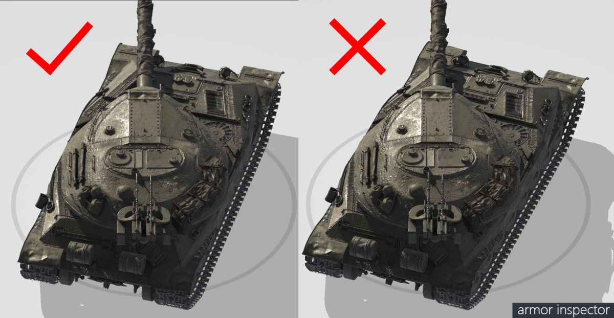 "Нлд придется показать". На картинках показаны предельные положения танка, если есть подозрения, что кто-то выцелит этот кусочек нлд - никто не запрещает немного довернуть. Плюс я не знаю какая в игре "толщина снаряда", может быть при таком положении корпуса, как на картинке нлд будет полностью скрыто при возможности стрелять.
