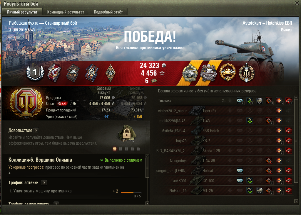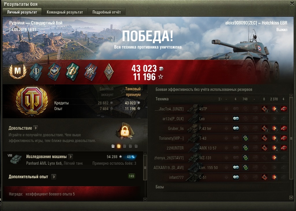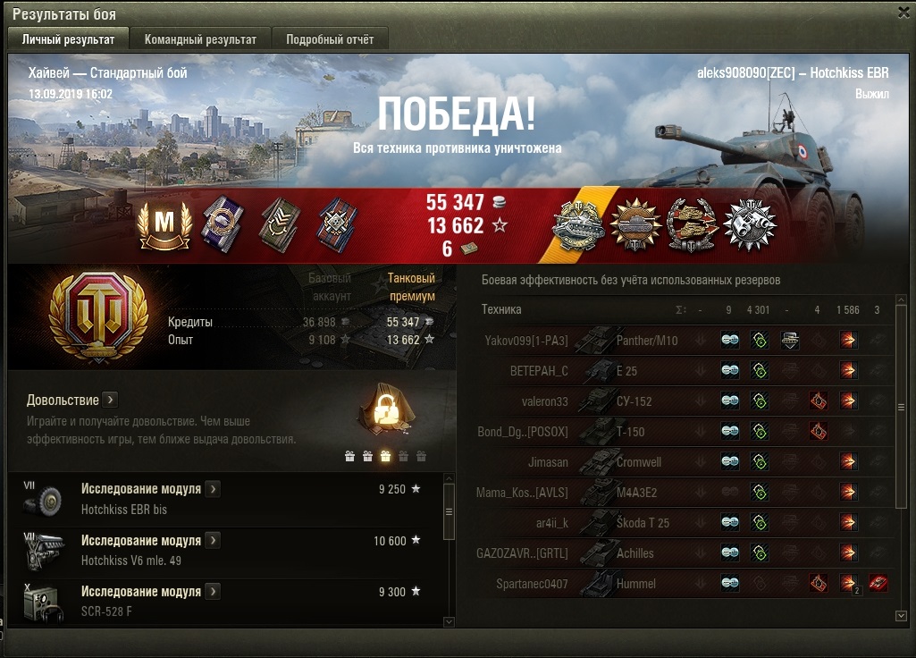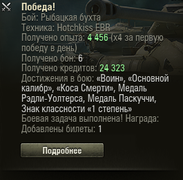 Благодаря акционным х5 прошёл танк всего за 18 боёв, взял разок мастера, да и ладно. Если честно, не очень понравился, ничего особенного. Предыдущий был интереснее, а следующий - вообще лютая штуковина.