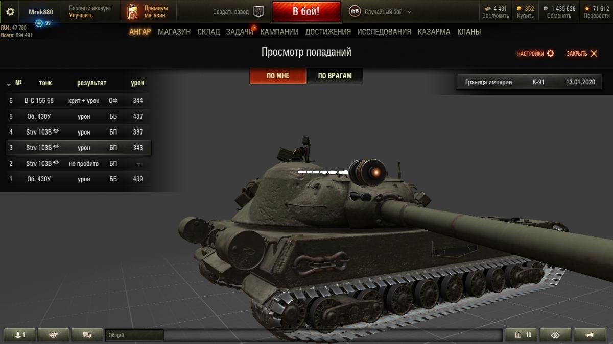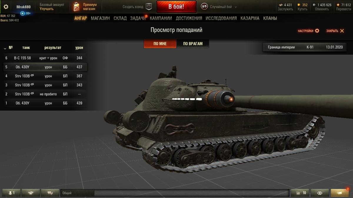 Модель, тоесть танчик, шикарный. Требует некоторых мозгов. И не стоит тут плакать по поводу брони. Броня есть у объекта 430У, это кому хочется выехать на центр и борзо там играть на виду у всех. Здесь так не выйдет. Да и не нужно. На моем аккаунте этот танк задавлен по скорости полета снаряда и точности. Это очень заметно. Плюс баланс в ботокоманды. Как итог - 34% побед. На любой карте можно найти подходящую позицию и хорошо отыграть. Танк очень командозависим. В генеральных сражениях играть очень сложно, ввиду отсутствия подходящих позиций, тоесть  имеющиеся три карты под него не годятся. Тащить не выйдет совсем. Хотя чтото иногда получается. А так - мне зашел, получаю массу удовольствия.