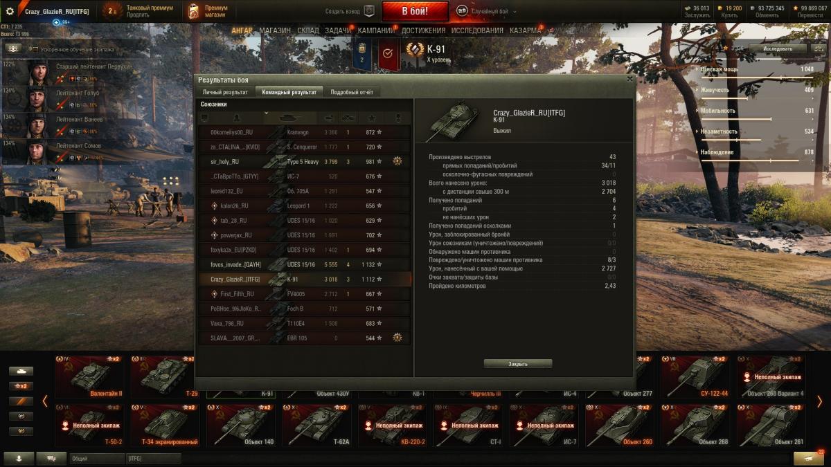 Да,от вариант 2 плевался и матерился. Если бы не новогодняя ёлка+резервы+прем аккаунт,то наверное не осилил бы его. К-91 на самом деле не совсем плох. Он просто какой то..недоделанный что ли.  Чего то не хватает. Возможно добавить динамики,можно башню зашить. Как вариант брони немного добавить (в том числе крышки МТО). Маскировка и обзор в принципе неплохие.