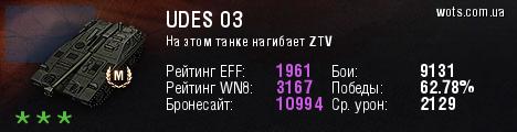 UDES 03 настоящий :bush:Поэтому, если Вам не доставляет проблем осадный/походный режим, любите ПТ и скорость, в совокупности с отличными ТТХ орудия, UDES 03 станет одним из Ваших любимчиков. Ведь играть на нём одно удовольствие !