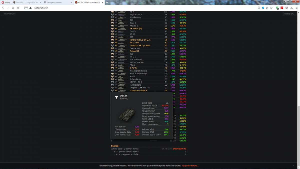 Очень проиворечивый танк. Вроде и можно хорошо настреливать, но на каждый выстрел нужно дико потеть. А толку от настрела нет, потому что ты почти ни на что не влияешь стоя в кустах. Танк вообще делался под другую мету как будто бы. Под 5-7 тт на команду и более затяжные бои. На 8 уровне есть достаточно более универсальных пт, которые и в кустике чуть что постоят и атаку поддержат. 1,5к средухи и ели-ели за 50%, при том что и подставляюсь и рискую, снимаю стволы и поддерживаю кое-как. Ну не могёт этот танк тащить. Ему нужно либо подтянуть его детсадовскую альфу либо дать дпма чуток.
