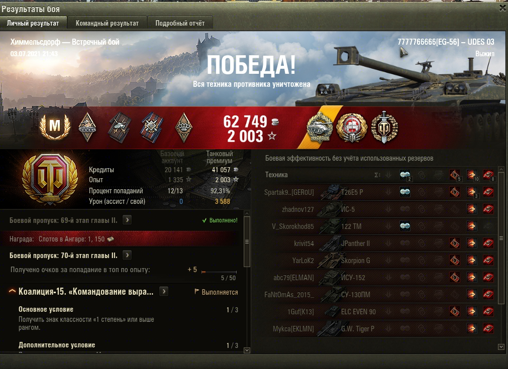А вот 103В действительно стоит места в ангаре и одна из немногих техник для меня на которой я уверен в бою - уверен что всё зависит от меня, а не от разброса ТТХ