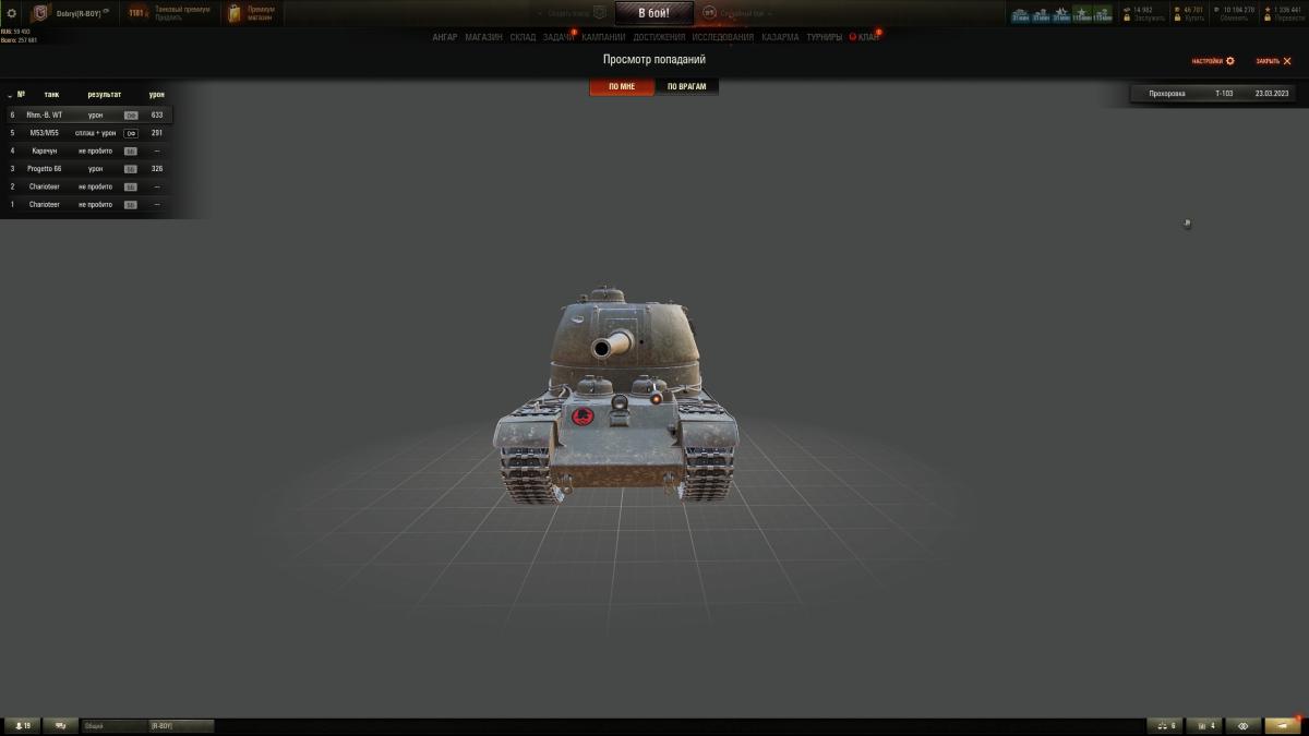 Да Т103 по большому счету пофигу куда попадать..90% танков просто в силуэт шлёпает.Толковый Т103 едет с тяжами ..