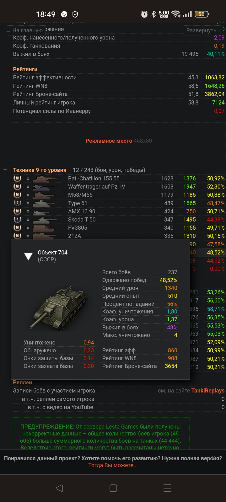 Извиняюсь сразу перед модератором sanek_master ,ибо действие или как в этом случае бездействие модераторов не обсуждается ,но просто уже накипело видеть нытье этого  персонажа GRO251075 ,ему уже кто только не объяснял, ну не нравиться тебе этот танк,  не умеешь ты реализовывать плюсы этого танка а их у него надо заметить больше чем минусов,не играй на нем возьми себе танк подходящий под твой стиль игры так нет же колется плачет но ест,так ешь молча нет надо сюда прийти и доказывать людям что танк ведро и главное ему предоставляют факты скрины с результативными боями как в топе так и внизу списка ,нет он теперь упрекает всех во лжи типо прикормленные разрабами подставные люди.Было бы это в реале, давно бы к дантисту ушел за голословные обвинения.Можно его как нибудь с этого топика выпнуть хоть не надолго? Зашёл я сайт посмотреть аккаунт этого персонажа,у него и объект 704  судя по проценту попаданий и среднему урону не очень,что тоже ведро? Или это ведро на халяву сойдёт, а на Т-103 боны потрачены? Жаба задушила потратил боны а танк не гнет ,как здесь некоторые пишут ,ну те прикормленные разрабами))) На 704 тоже весь бой в кустах ? А там у танка то броня есть )))Screenshot_2023-07-24-18-49-20-41_40deb401b9ffe8e1df2f1cc5ba480b12.jpg