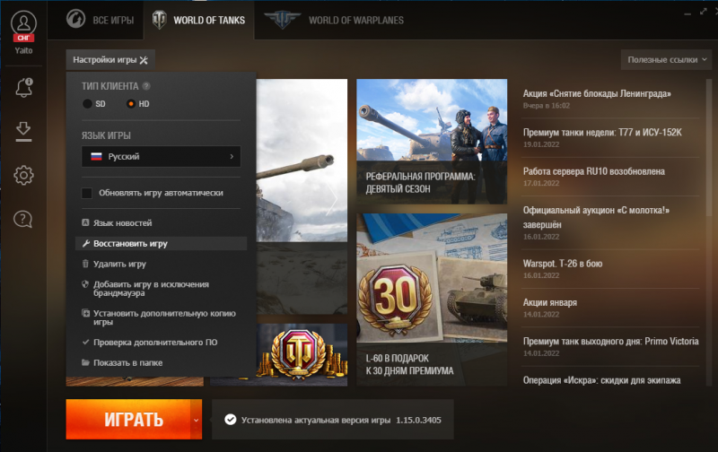 Также предварительно можете удалить файл preferences.xml (отвечает за настройки в клиенте, или даже полностью почистить папку) по адресу c:\ИМЯ ПОЛЬЗОВАТЕЛЯ\AppData\Roaming\Wargaming.net\WorldOfTanks\ - собьются все настройки на дефолтные и придётся настраивать по новой
