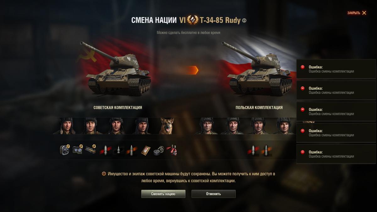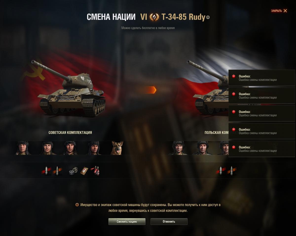 Ни польского экипажа ничего.... Ошибка смены комплектации.......