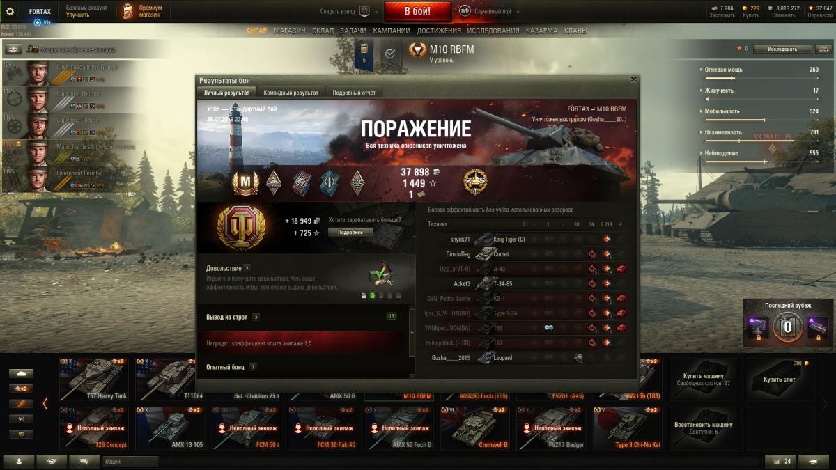 Решил подкачать экипаж фошу, а то ББ пара процентов не хватает. Откатал на машине 20 боев, с каждым боем нравится все больше, хотя часто умираю из-за лишней упоротости и мысли, что останусь безнаказанным. Пара мастеров в основном настрел по 5 уровню, не фонтан но мне приятно.